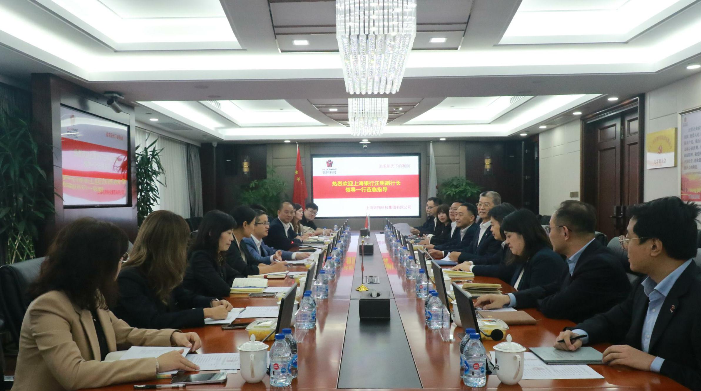 11月10日下午,上海銀行總行副行長汪明,授信審批部總經(jīng)理助理姚怡、資深高級審批人黃艷,公司業(yè)務部高級經(jīng)理錢敏,風險管理部高級副經(jīng)理范靜雅,浦西分行副行長胡佶,供應鏈金融部兼普惠金融部總經(jīng)理黃春飛,盧灣支行行長葉平等領導一行蒞臨鈺翔科技集團調(diào)研指導。鈺翔科技集團創(chuàng)始人、名譽董事長葛華,董事長桂益民,董事會秘書韓風雷,集團財務資金部、綜合辦公室、信息管理中心等集團職能部門負責人出席本次會議。